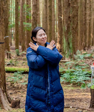 제주 어멍 숲 치유여정 - '어멍(어머니)'의 품처럼 편안한 머체왓 숲에서 걷기·명상·싱잉볼·해먹 휴식으로 몸과 마음을 천천히 회복하는 치유 프로그램이에요.