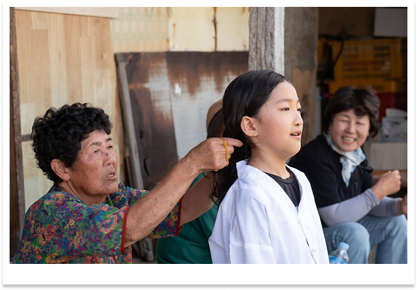 마을을 이끄는 대장 해녀와 함께하는 해녀 탈의실 장비 체험