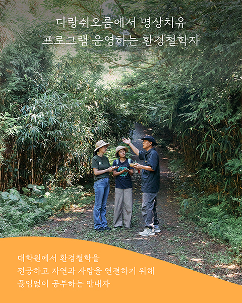 자연에서 몸과 마음을 치유하기 위해서는 자연과 사람의 관계를 이해하고 연결해야 한다는 생각에 계속 공부해요. 바다 풀을 이식하며 ‘바당 살리기’ 활동을 하고, 다랑쉬오름 플로깅을 즐거워하는 젊은 여행자들을 보면 뿌듯하죠.