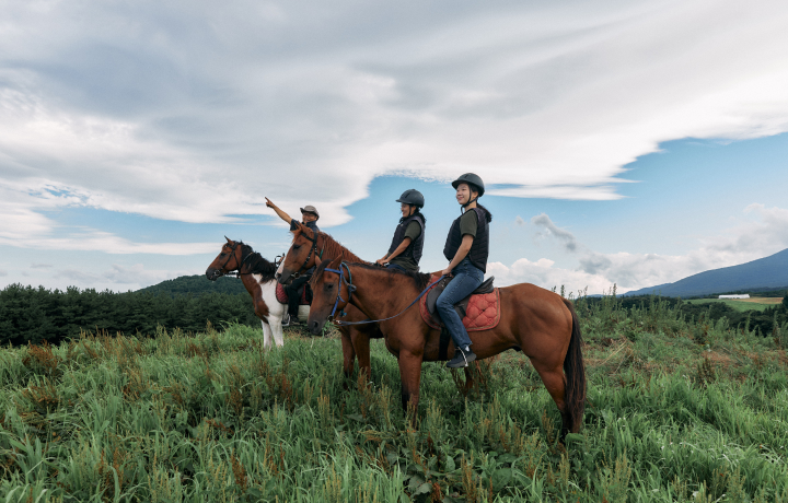 말을타고 바람 부는 오름에서