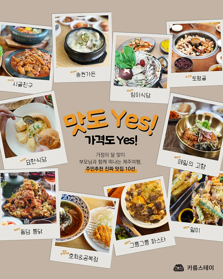 제주관광공사는 카름스테이(Kareum stay) 마을 주민들이 직접 선별하고 입소문을 내며 애용하는 곳들 중 10곳을 선정하여 사랑하는 부모님과의 잊지 못할 제주 미식 여행을 제안합니다.