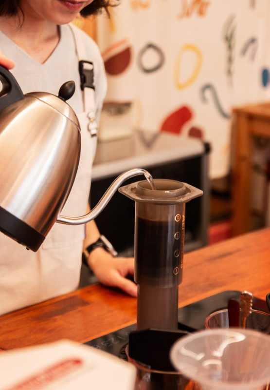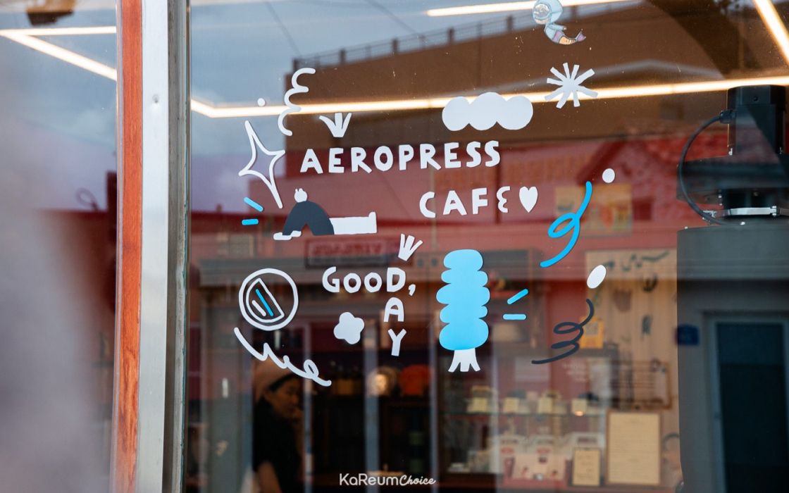 2019년 6월 오픈 이후, 이곳에서는 에스프레소 머신이 아닌 오직 ‘에어로프레스’라는 추출 도구만으로 커피를 내어드리고 있답니다. 제주에서 유일한 ‘에어로프레스 매장’이라는 타이틀이 호기심을 자극하지 않나요?
