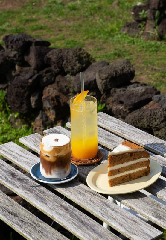 파람 카페는 커피의 맛도 특별합니다. 단순한 카페가 아니라, 제주도내 여러 카페에 원두를 납품하는 실력파 로스터가 운영하는 곳이기 때문이죠. 이곳에서 가장 인기 있는 메뉴는 100% 동물성 생크림으로 만든 아인슈페너입니다. 부드러운 크림이 진한 커피 위에 살며시 녹아들며, 마시는 순간 달콤하면서도 깊은 풍미가 퍼집니다. 또한, 한라봉 과육이 듬뿍 들어간 한라봉 에이드는 제주에서만 맛볼 수 있는 상큼한 음료로, 자전거 여행 후 갈증을 시원하게 풀어줍니다. 여기에 직접 구운 당근 케이크와 다양한 디저트까지 더해진다면, 그 어떤 피로도 잊게 되는 순간이 될 거예요.