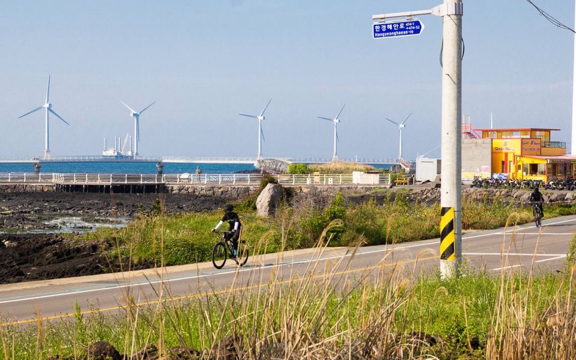 제주 서쪽을 따라 이어지는 신창 해안도로는 자전거 여행자들에게 가장 사랑받는 코스 중 하나입니다.