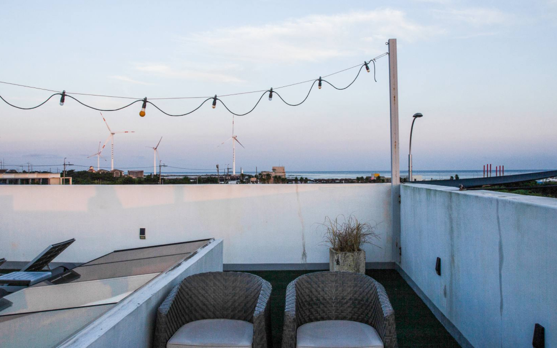 해 질 무렵의 풍경은 더욱 장관이에요. 붉게 물든 하늘을 배경으로 우뚝 선 풍차의 실루엣을 바라보는 순간, 그 어떤 동행보다 가슴 벅찬 감동을 느낄 수 있죠. 이때 많은 여행자들이 혼자 여행을 선택한 자신에게 고마워하게 된다고 해요. 여러분도 그런 특별한 순간을 경험해보고 싶지 않나요? 신창윤업사 숙소 내부 이야기를 해볼까요? 여행자의 마음을 읽은 듯한 섬세함으로 가득한 이곳은 모던하면서도 아늑한 인테리어, 포근한 침구, 그리고 복층 구조의 높은 천장이 편안한 여유로움을 더해줍니다. 각 객실에 마련된 개별 테라스와 자쿠지는 혼자 여행의 묘미를 한층 높여주는 특별한 공간이에요. 따뜻한 물에 몸을 담그고 하늘을 올려다보면, 별들이 오직 나만을 위해 반짝이는 듯한 느낌을 받을 수 있죠. 신창윤업사에서의 숙박, 한번쯤 욕심내 보세요. 호스트의 말을 다시 한 번 들어볼까요? “자전거 타며 지쳐있던 몸을 따뜻한 물로 녹이면서 주변을 둘러보면 아름다운 노을이 선물처럼 찾아올 거예요. 이곳에서의 시간이 여러분에게 특별한 추억이 되길 바랍니다.”