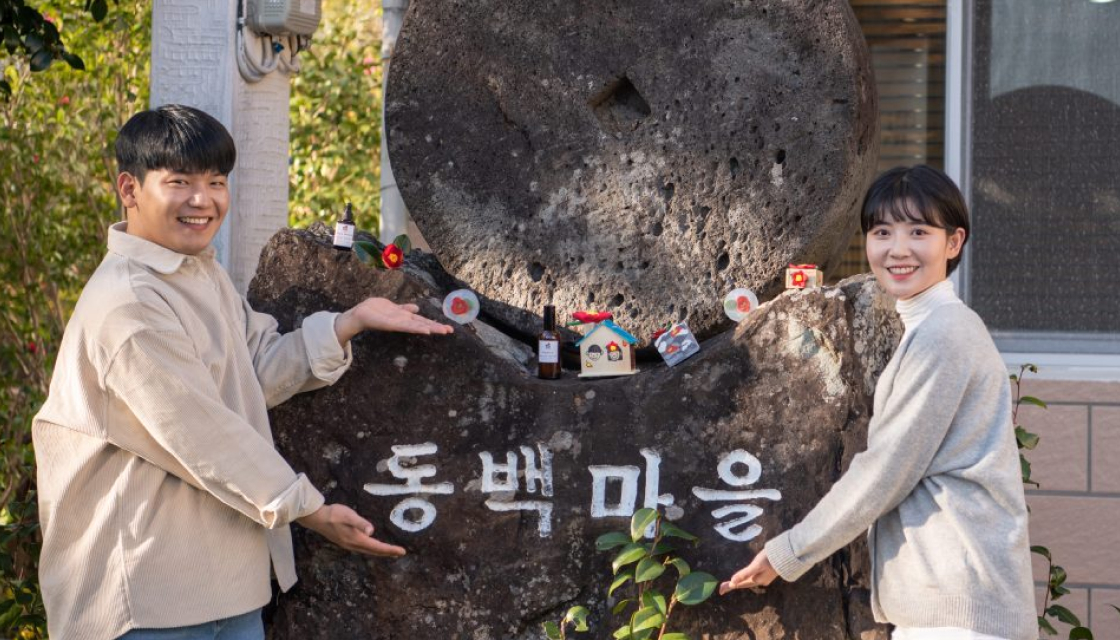 동백마을은 서귀포시 남원읍 동쪽 끝자락에 위치해 있어요. 주로, 주민 500여 명이 감귤 농사를 하고 있어요. 숨어있는, 제주도에 나만 알 수 있는 그런 곳을 찾아오시는 분들이 좀 많으신 것 같아요. 연령대는 젊은 분들도 계시고요.