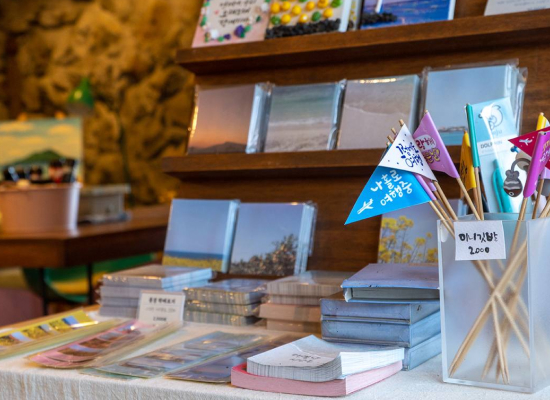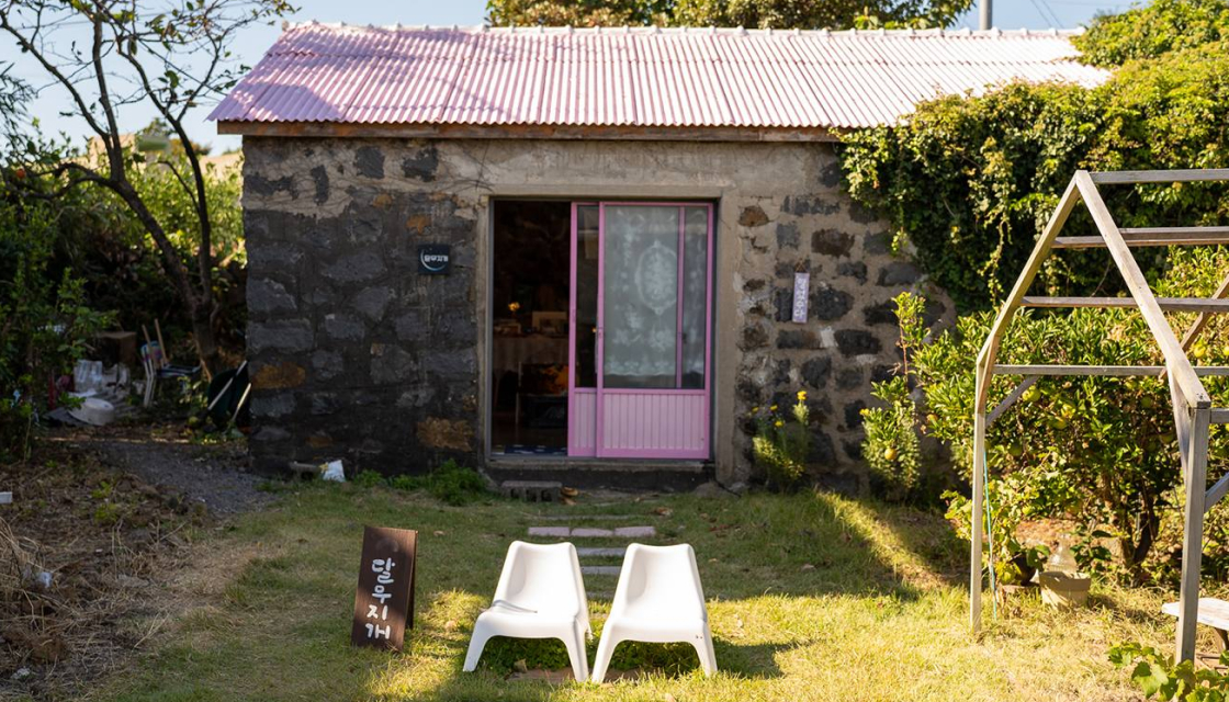 이곳은 제주도 돌 창고를 개조하여 만든 소품샵입니다. 돌벽 사이로 삐뚤빼뚤 창들이 나 있고 조명은 은은하게 공간 곳곳에 놓인 소품들을 비춥니다. 아기자기한 공예품들은 제주를 주제로 하고 있으며, 개중에는 이곳 주인이 직접 그리고 만들기도 했습니다. 사랑스러운 손글씨로 쓰인 미니 깃발은 들어올 때도, 나설 때도 시선을 사로잡습니다. <달무지개>는 공방이기도 합니다. 오일파스텔부터 아크릴화, 나이프페인팅 등 각종 원데이클래스와 정규수업이 열립니다. 특히 제주 돌담 액자 만들기는 인기가 많은 클래스로, 클레이와 현무암들로 제주의 풍경을 만들고 직접 손글씨를 써서 액자를 만듭니다. 여행 중에 잊고 싶지 않은 순간들이 꼭 있습니다. 사진으로 충분하지 않다고 느낄 때, 직접 그 풍경을 액자로 만들고 오래오래 간직해보는 건 어떨까요?