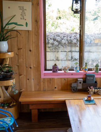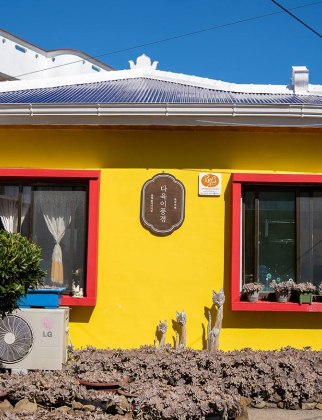 <다육이풍경>은 하효마을에 있는 카페 겸 식당이예요. 돌담을 온통 둘러싸고 있는 다육이들은 자연스레 사진 찍히길 기다리고 있어요. 입구부터 보이는 풍경과 상호명에서 알 수 있듯, 이 집에서 다육이는 특별해요. 다육이 주스와 비빔밥 등 식용 다육이를 활용한 메뉴를 판매하고 있어요. 반신반의한 상태로 첫 맛을 느껴보면, 지레 일찍 겁먹었나 싶죠. 은은한 풋사과 같은 맛이예요. 맛있죠.