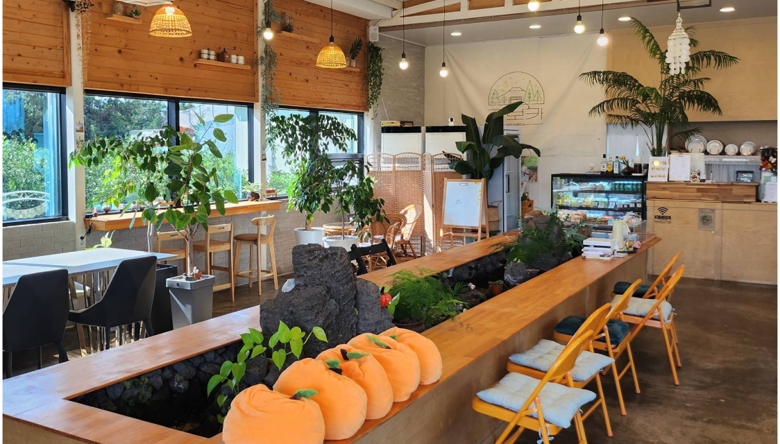 쇠소깍부터 남쪽 해안도로로 이어지는 올레길 6코스를 따라 걷다보면, 동네 구석구석을 누비며 바다와 오름까지 다양한 풍경을 즐길 수 있죠. 갈 길은 끝없이 늘어져 있으나 걸음을 멈추게 만드는 풍경이 있어요. 바로 탁 트인 바다와 높게 솟은 암석이 있는 게우지코지. 잠깐 숨을 고르고 싶다면 고개를 돌려보세요. 뷰 맛집으로 유명한 게우지코지 카페가 그 곳에 있어요. 운이 좋다면 돌고래도 볼 수있는 곳이죠.