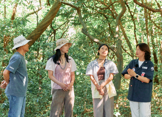 신흥2리를 300년 동안 지켜온 동백군락지는 그 자체로 신성한 공간입니다. 동백언우재센터장인 최혜연 카름마스터의 안내로 동백 숲에 들어서는 순간, 마음을 경건하게 하고 자연에 대한 감사를 표하며 시작하는 특별한 산책입니다. 울창한 동백나무들 사이로 난 오솔길을 걸으며 동백의 생태와 역사, 그리고 이 숲이 마을 사람들에게 어떤 의미인지 들어봅니다. 계절에 따라 붉은 동백꽃이 만개하거나 동백 열매가 주렁주렁 매달린 모습, 바닥에 떨어진 동백 열매를 줍는 정경을 감상할 수 있어요.