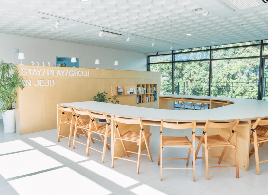 숙소 곳곳에는어린 시절의 추억을 불러일으키는소품들과 함께, 자연을 더욱 가까이 느낄 수 있는 공간들이 마련되어 있어요. 1층 '책밭' 공간에서는 다양한 책들을 읽으며 여유로운 시간을 보낼 수 있고, 저지리의 특산품인 백서향을 활용한 향수를 구매할 수 있 습니다. 특히 봄에 열리는 백서향 축제 시기에 방문하면 더욱 특별한 경험을 할 수 있어요. 올레꾼들도 이곳에서 잠시 쉬며 책을 읽 고 백서향 향수를 구매해 가곤 합니다.2층에는쾌적한 숙소뿐만 아니라 회의나 행사가 가능한 공간도 마련되어 있어 장기간 머물 며 농촌 유학도 가능합니다. 주변 곶자왈을 자유롭게 산책하며 볏바른궤, 예술인마을, 미술관 등 저지리의 다양한 명소들을 탐방 하며 머무르기에최적의 숙소로, 자연 속에서 진정한 휴식과 재충전의 시간을 경험할 수 있습니다.