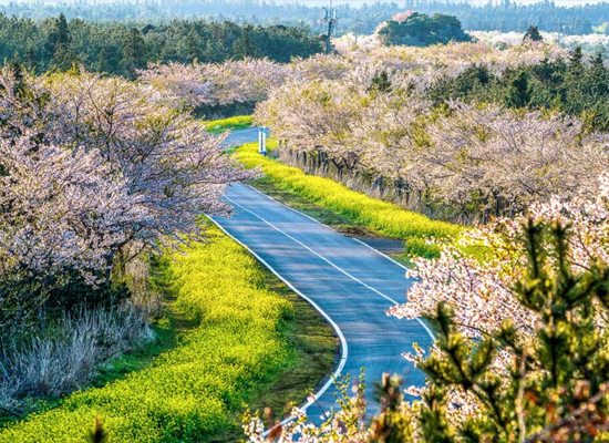 노란 유채꽃 바다가 펼쳐지는 도로, 녹산로는 제주의 봄 사진 명소로 손꼽히는 장소입니다. 차도를 중심으로 길가에 노란 유채꽃이 화사한 봄을 수놓습니다. 유채꽃과 벚꽃 개화가 겹치는 시기에는 일부 구간에서 벚꽃과 유채꽃을 함께 볼 수 있어 장관입니다. ‘한국의 아름다운 길 100선’에 선정될 정도의 인기 드라이브 코스이며, 꽃이 만개하는 시즌에는 더욱 화려한 장관을 만들어냅니다. 봄이면 이 설레는 광경을 보기 위해 많은 사람들이 찾으며, 유채꽃이 만개하는 시기에는 근처 공터에서 유채꽃 축제가 열립니다.