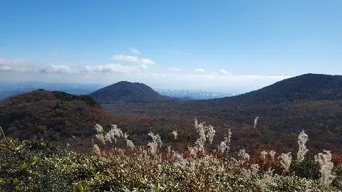 흙붉은오름에서 본 돌오름, 성널오름, 사라오름의 가을 풍광이 실로 아름다움 그 자체이다