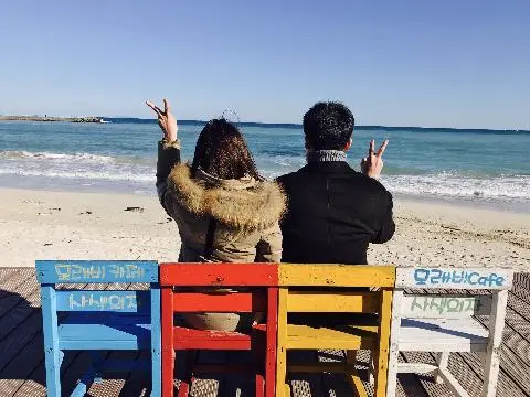 월정리해변 모래비카페의 사색의자 라는 사진 스팟입니다. 말그대로 네가지 색깔의 사색의자지만, 혼자 앉아있으면 끝내주는 경치의 바닷가를 보며 사색에 잠기곤 합니다. 두명이상이 아니라 혼자서도 사진찍을곳이 많고 추울때 몸을 녹일 수 있는 까페들도 많이 있어 11월에 가기엔 제격입니다.