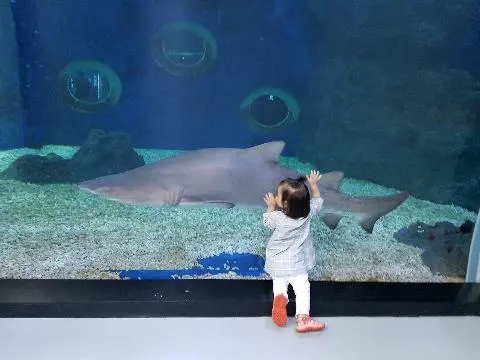 상어모형에 물리시는 것처럼 흉내도 내주셨어요 가까이에서 물고기 덩치보시고 감탄하시고 사람많아서 놀래시고
