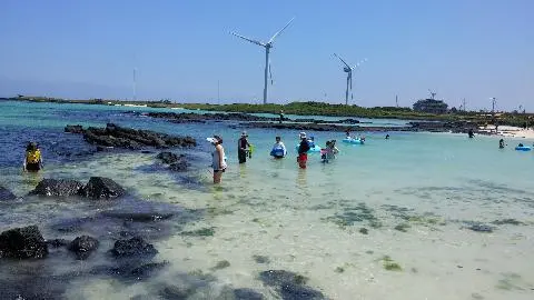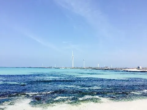 #여름휴가를 #성세기해수욕장에서 멋지게 보냈어요.그냥 바라만 봐도 힐링이 되는 너무나 #아름다운...#보석이 따로 없어요. 제주도는 어디를 가도 다 멋지고 아름답지만 성세기 해변이 유독 맘을 잡았던건...풍력발전기와 보트가 신비롭게푸른 바다와 어우러져 아름다움을 더했기 때문입니다~^^
