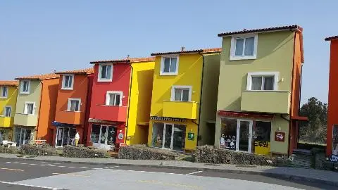 스위스마을에서 함덕 가는 길에 우연히 발견한 오렌지색 컨테이너 모양의 집~ 우왕 저거 우리 제주 삼촌네 밭에 있는 바구니 그거잖아ㅋㅋㅋㅋ