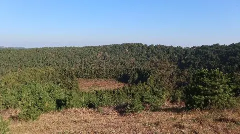 오름의 가장 윗부분이 움푹 들어가 있고 그 안에 큰 나무들이 원을 그리며 자라나 있었답니다.