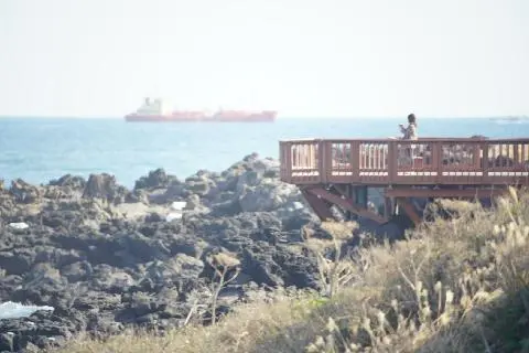 용연구름다리는 제주공항에서 서쪽으로 10분 거리에 위치한 관광명소예요. 용연은 제주시 용담동에 위치한 계곡의 물이 유입되는 하천으로, 산등성이부터 바닷가로 흘러 바닷물과 민물이 만나는 신비로움이 있어요. 용연은 가뭄이 들어도 물이 마르지 않아 이곳에 살던 용이 승천해 비를 내리게 했다는 전설이 내려오는 곳이에요. 물이 풍부해 선인들이 풍류를 즐긴 장소로도 이용되었다고 해요. 출렁다리로 연결된 용연구름다리는 용연의 기암절벽 사이를 잇는, 너비 2.2m, 길이 42m의 현수교 형태예요. 붉은빛이 감도는 정자와 에메랄드빛 계곡이 마치 한 폭의 그림처럼 어우러진 경관을 감상할 수 있어요. 특히 야경이 멋진 곳으로, 저녁 산책코스로 손색이 없는 곳이에요. 밤이면 다리에 켜지는 형형색색의 불빛들과 잔잔한 호수, 우거진 나무숲들이 장관을 이루는 모습도 볼 수 있어요. 또 제주올레 17코스가 통과하는 곳으로 제주 자연의 아름다움과 은은함을 느낄 수 있어요.