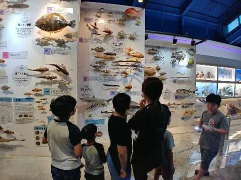 제주해양동물박물관이 참 좋았던 이유는 아이들이 수동적으로 관찰하는게 아니라 능동적으로 박물관 투어에 참여할 숯있었다는 점이었어요. 입장권을 구매하면 데스크에서 아이들에게 퀴즈가 적힌 종이와 돋보기를 주십니다. 보통 박물관에 가면 아이들은 별 관심이 없기에 후다다닥 빠르게 눈으고 보고 지나가버리는데, 여긴 아이들이 퀴즈 정답을 찾기 위해서라도 천천히 걸으면서 관찰하고, 이름도 적어보며 괁람 할 수 있어요. 무엇보다 실물표본을 관찰할 수 있고, 만져볼 수 있는 것들도 있어 아이들이 엄청 신기해 했어요. 여긴 정말 추천합니다!