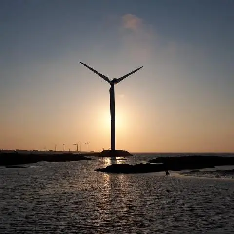 시원한 바람과 끝없이 펼쳐진 바다위의 바람개비(풍력발전기)들..