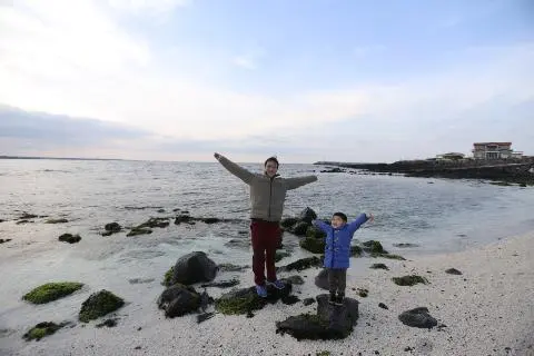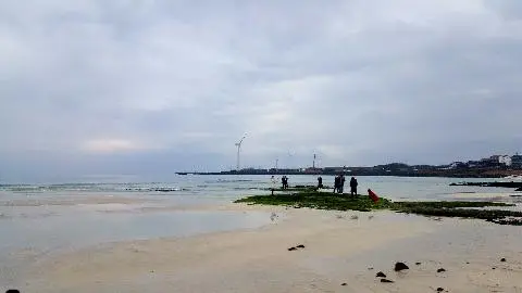 같은 장소라고 해도 날씨에 따라 천의 얼굴을 보여주기도 한다. 국내유일의 산호해변이라고도 하는데 사실 산호는 아니고 홍조사단괴로 형성된 해수욕장이다. 제주에서도 유일하게 이곳에만 이런 홍사사단괴가 생성되는 원인은 아직 밝혀지지 않았다. 이곳에서 바라보는 제주본섬의 모습도 매우 아름답다. 이름처럼 하얀모래가 이국적이다. #서빈백사 #우도 #우도팔경 #홍조사해변 #산호해변