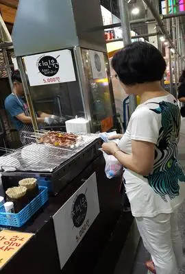 쇠소깍을 둘러보고 바로 이중섭 미술관 구경을 한 후, 이중섭거리를 지나서 서귀포매일올레시장에 갔어요. 줄서서먹는다는 흑돼지꼬치를 먹어봤어요! Very good !! 먹고 나니, 기운도 나고 좋았어요 ! ^^