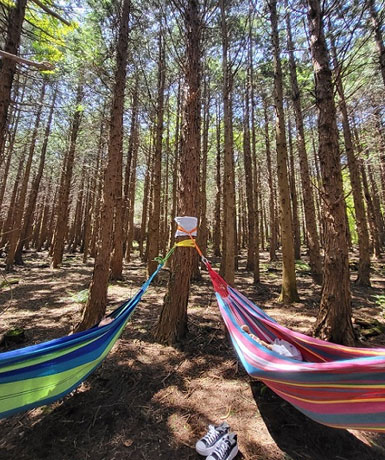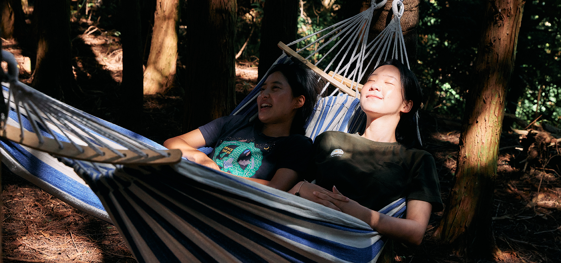 제주 어멍 숲 치유여정 - '어멍(어머니)'의 품처럼 편안한 머체왓 숲에서 걷기·명상·싱잉볼·해먹 휴식으로 몸과 마음을 천천히 회복하는 치유 프로그램이에요.