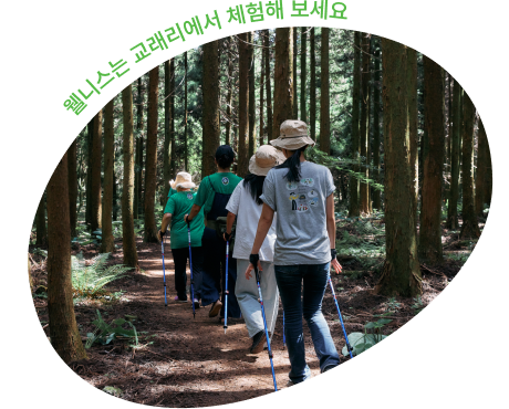 네 가지 힐링 - 걷고 호흡하고 맛보고 만드는 네 가지 체험이 자연스럽게 이어지는 머체왓숲 웰니스 여행입니다. 자연 속에서 나만의 속도로 편안한 시간을 보내보세요.