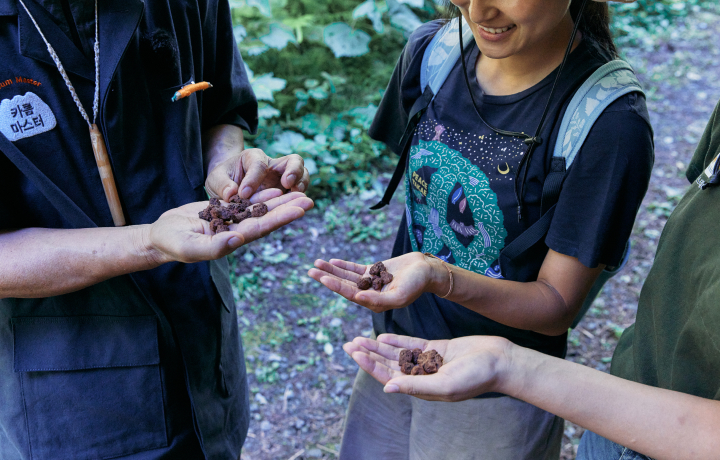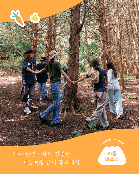 강윤복 카름마스터는 대학원에서 환경철학을 전공하고 자연해설가, 산림교육전문가, 명상과 심리치료 전문가, 운동처방사, 웰니스 코디네이터, 사회환경교육지도사, 힐링커뮤니티댄스 안내자 및 밭담 해설가 등 지속가능한 자연의 품 속으로 사람을 안내하기 위해 끊임없이 공부하는 믿음직한 안내자입니다. 그렇다고 진지하기만 할까요? 아이처럼 순수한 웃음이 그대로 멋진 주름이 된 강윤복 카름마스터와 함께 지친 몸과 마음을 환하게 깨워보시죠!