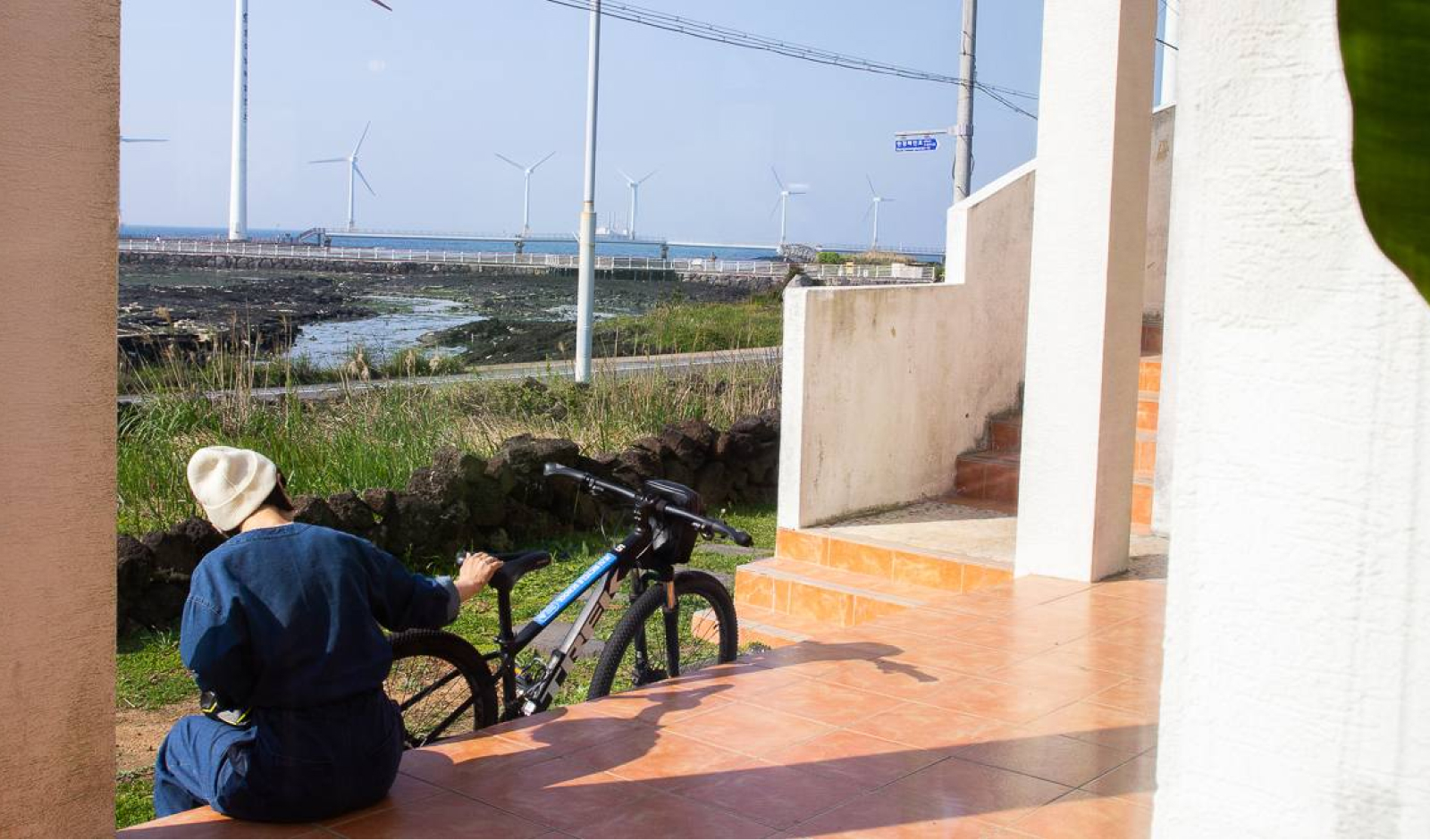 - 제주의 바다와 하늘, 그리고 그 사이로 달리는 자전거는 그 자체로 자유를 선사합니다.