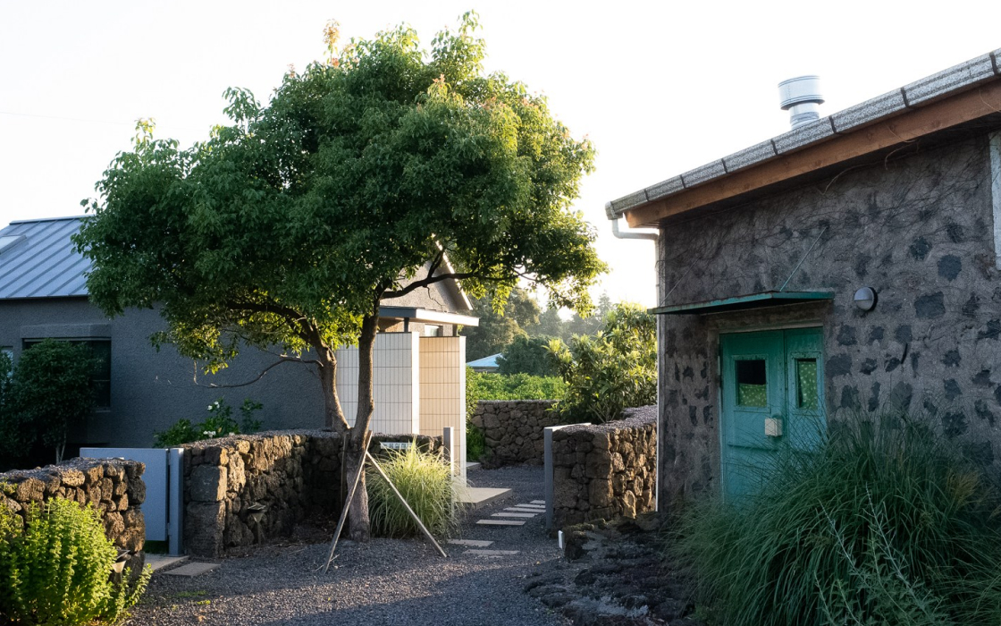 목조로 지어진 따뜻한 공간은 계절마다 다른 매력을 선사합니다. 5월이면 귤꽃 향기가 온 마을에 퍼지고, 여름이면 시원한 나무 그늘이, 가을이면 주황빛 귤이 돌담을 물들이죠. 겨울에는 따뜻한 목조 주택에서 포근한 휴식을 즐길 수 있습니다. 창 밖으로 보이는 돌담과 귤밭은 제주 그 자체를 담고 있어요. 침실에는 포근한 침구와 아이보리 벽지가 편안함을 더하고, 주방에는 건강한 식사를 위한 기본적인 도구들이 갖춰져 있습니다.