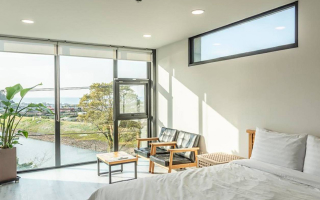 - 룸마다 통창을 갖추고 있어 어느 방에서나 호수와 제주 바다의 일출과 일몰을 감상 가능