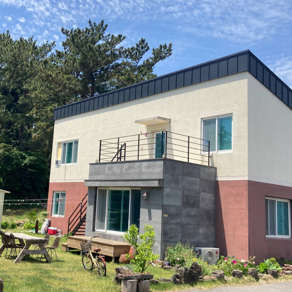 큰 도로에서 너무 멀리 떨어져 있지 않은 곳에 위치한 곳으로 같은 형태의 집 4채가 모여 사는 형태입니다. 그래서 너무 외지거나 인적이 드물지 않아서 조용하면서 무섭지 않은 곳입니다. 1,2층 독채를 모두 사용하기 때문에 다양하게 활용이 가능하고 앞마당에서는 자유롭게 바베큐나 야외활동을 할 수 있어요.