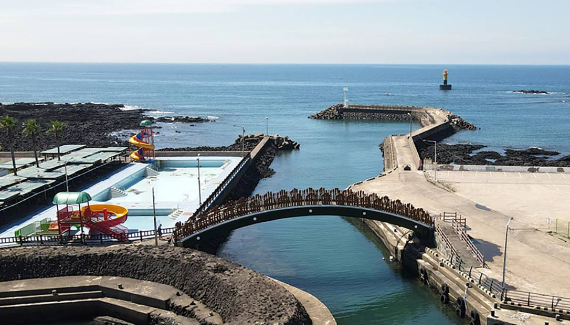 올레길 5코스의 시작 지점으로 잘 알려진 곳이 남원 포구입니다. 이곳은 아직도 포구의 옛 모습이 남아있습니다. 돌로 쌓은 모양을 그대로 간직해 더욱 매력이 있는 곳이지요. 한여름 낮엔 해수 풀장에서 아이들이 뛰어노는 소리로 가득 찼던 곳으로 저녁이 되면 포구를 둘러싸고 낚시하는 낚시꾼들이 모여드는데 무늬오징어 등이 잡힌다고 합니다. 남원포구는 남원 읍내 가운데 있으므로 남원의 맛집들이 근처에 있어 식사하기에도 좋습니다. 생이머리코지와 알덕 사이에 있는 남원 포구는 재산이개라고도 불리는데, 재산이개는 남원리의 옛 이름이라고 합니다. 이 포구를 중심으로 염전이 형성되고 여러 해산물을 생산하였으며 주민들은 이에 재산을 축적해 나갔다 하여 붙여진 이름이랍니다.