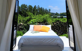 귤 밭에 자연스럽게 어울리는 공간으로 귤림과 하나가 되는 ‘귤림동화’로 이름 짓게 되었습니다. 집안은 집중의 공간으로, 집 밖은 집중을 벗어난 이상향과 자유로운 공간으로 만들었어요. 시그니처인 레일 달린 침대로 창밖을 나가 귤림 속에서 잠을 청할 수 있어요. 폴라로이드 즉석카메라(후지 인스탁스 미니 40) 와 필름을 무료로 제공하니, 숙소 안팎 다양한 포토스팟에서 근사한 추억을 남겨보세요. 사계절 내내 웰컴 귤을 드리며, 10월부터 2월까지는 직접 수확한 귤을 한 팀당 3kg씩 가져갈 수 있는 무료 귤 따기 체험도 가능해요. 식물 가득한 온실에서는 준비된 족욕제와 함께 족욕도 즐길 수 있습니다.
