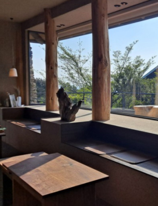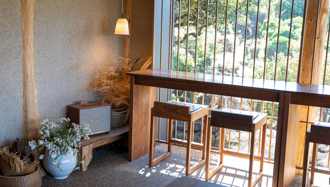 수풀에 조금씩 가려지던 한라산이 가장 시원하게 보인다면 이제 <카페 숨도>에 다다른 거예요. 잠시 숨을 고르고 쉬어갈 때죠. 문을 열고 카페 안으로 들어서면 생각보다 아주 단정하고 정갈한 공간이 나타나요. 리빙&라이프스타일 잡지에서 보았을 법한 장면과 장식이 하나하나 눈길을 사로잡죠. 창밖에는 한라산 자락과 광활한 녹지가 또 시선을 이끄는데요. 어쩌면 몸과 마음은 쉬어가나, 멋진 장면이 자꾸 눈에 띄어 눈은 쉬지 못하는 곳일지도 모르겠어요.