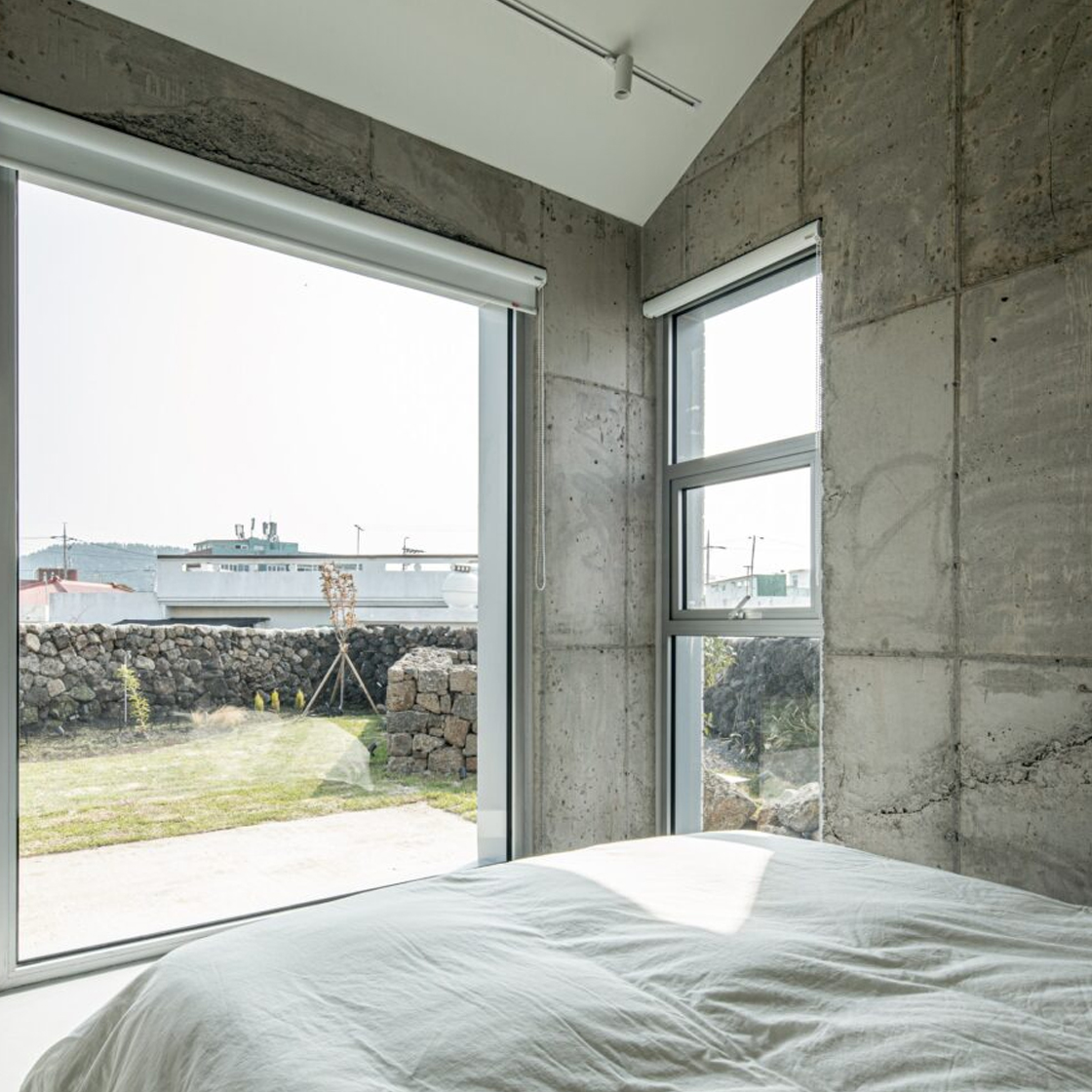 제주 특유의 감성이 있는 김녕마을. 나만의 특별한 별장을 원한다면 바로 여기 김녕별장에서 머무시기 바랍니다. 풀의 감촉, 그것이 주는 생의 리듬은 치유의 기능이 있다고 믿고 있습니다. 도심 속에서의 지친 일상에서 벗어나 잔디, 정원을 바라보며 편안함, 안도감을 느낄 수 있습니다. 김녕별장에 방문하는 아이들이 집안/밖으로 솔솔 불어오는 바람을 느끼고 티비나 스마트폰이 아닌 작은풀이 자라는 걸 관찰하는 것도 꽤 재미있다고 하더라고요. 거실, 방 모두 통창으로 앞 마당과 뒷마당이 모두 자연으로 유기적으로 연계되어 자연과 하나가 된 듯한 느낌이 들어요. 특히 침대에 누웠을 때 앞마당, 뒷마당이 보이는데 아침에 일어나면 자연을 바로 마주할 수 있어서 좋아요.