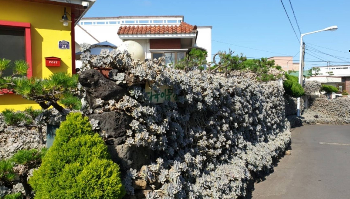 <다육이풍경>은 하효마을에 있는 카페 겸 식당이예요. 돌담을 온통 둘러싸고 있는 다육이들은 자연스레 사진 찍히길 기다리고 있어요. 입구부터 보이는 풍경과 상호명에서 알 수 있듯, 이 집에서 다육이는 특별해요. 다육이 주스와 비빔밥 등 식용 다육이를 활용한 메뉴를 판매하고 있어요. 반신반의한 상태로 첫 맛을 느껴보면, 지레 일찍 겁먹었나 싶죠. 은은한 풋사과 같은 맛이예요. 맛있죠.