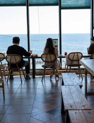 쇠소깍부터 남쪽 해안도로로 이어지는 올레길 6코스를 따라 걷다보면, 동네 구석구석을 누비며 바다와 오름까지 다양한 풍경을 즐길 수 있죠. 갈 길은 끝없이 늘어져 있으나 걸음을 멈추게 만드는 풍경이 있어요. 바로 탁 트인 바다와 높게 솟은 암석이 있는 게우지코지. 잠깐 숨을 고르고 싶다면 고개를 돌려보세요. 뷰 맛집으로 유명한 게우지코지 카페가 그 곳에 있어요. 운이 좋다면 돌고래도 볼 수있는 곳이죠.