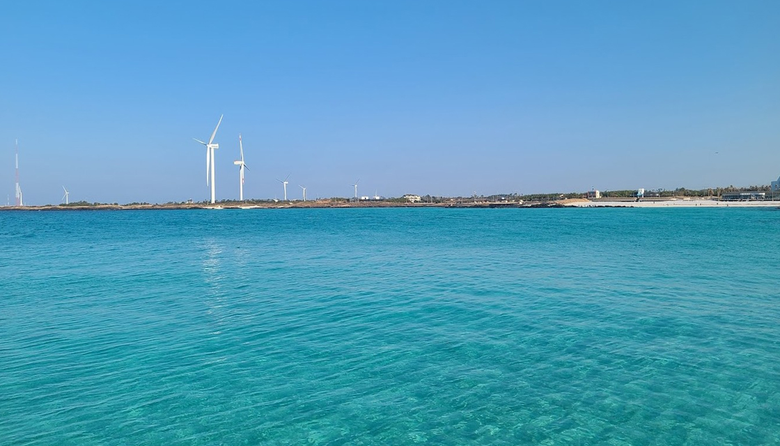 제주의 스노클링의 성지로 떠오르는 김녕 세기알해변은 새하얀 모래에 에메랄드빛 바다가 펼쳐집니다. 수심이 얕고 파도가 잔잔해요. 고운 모래 바닥이라서 물에 둥둥 떠서 바다를 헤엄치며 자유로움을 느껴보세요. 해변에 가까운 곳은 수심이 얕아 아이들과도 안전하게 놀 수 있어요. 다만, 조금 깊이 나가면 수심이 깊은 곳도 있으니 안전에 유의하며 놀아봅니다. 패들 보트와 요트를 즐길 수 있어요. 빨간 등대와 하얀 풍력발전기와 함께 스냅사진을 찍기에도 좋은 장소입니다.