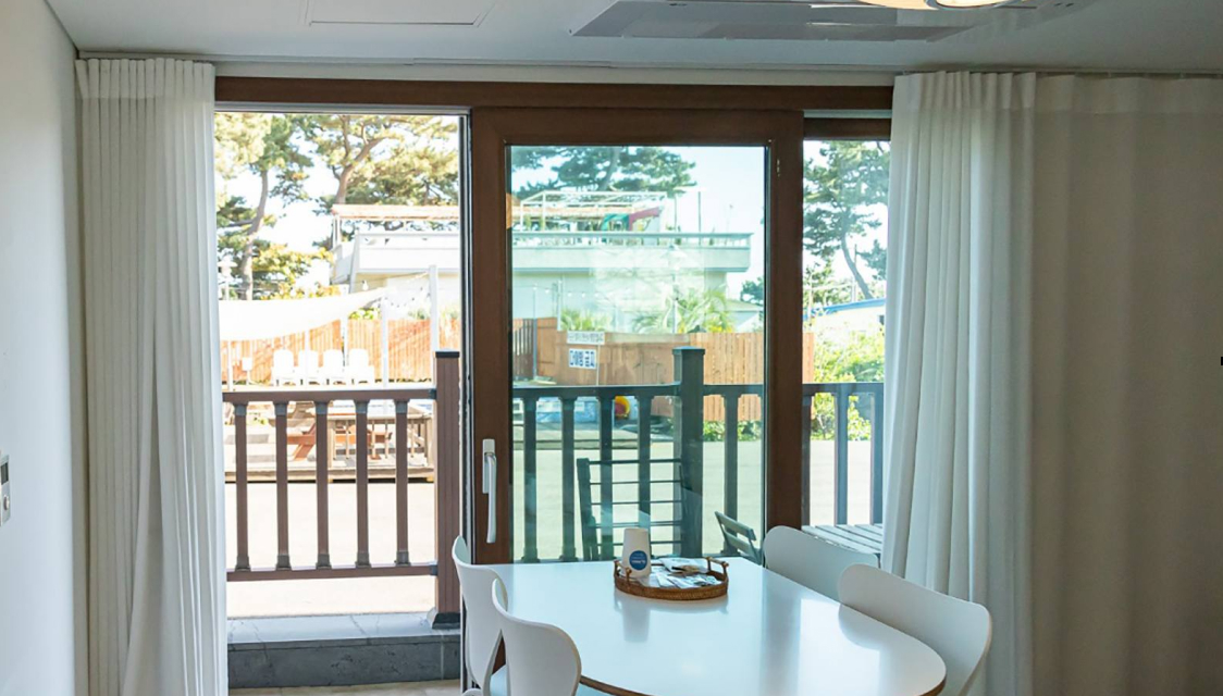 아름다운 쇠소깍 해변에서 파도 소리를 들으며 힐링할 수 있는 공간입니다. 호텔식으로 관리하는 청결한 침구와 화장실이 두 개씩 있는 복층 구조의 숙소입니다. 여름철에는 넓은 야외 수영장을 운영하고, 넉넉한 크기의 주차장을 보유하고 있습니다.
