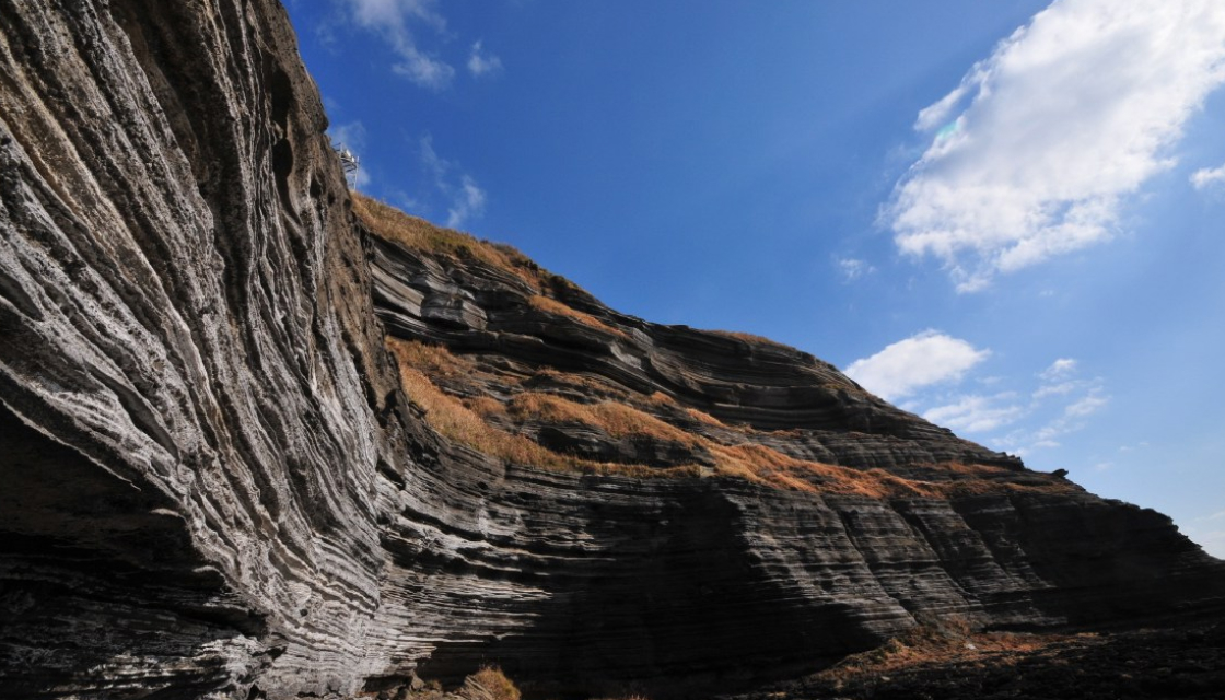 수월봉은 차귀도로 떨어지는 낙조를 관찰할 수 있는 곳으로, 수려한 지질 자원과 경치를 즐길 수 있는 트레일 코스입니다. 높이 77m의 수월봉은 작은 언덕 형태를 하고 있지만, 해안 절벽을 따라 드러난 화산재 지층 속에 남겨진 다양한 화산 퇴적구조로 인해 화산학 연구의 교과서 역할을 합니다. 경관이 아름다울 뿐만 아니라, 지구 과학적으로 중요해 유네스코에서 세계지질공원으로 지정되어 있습니다.