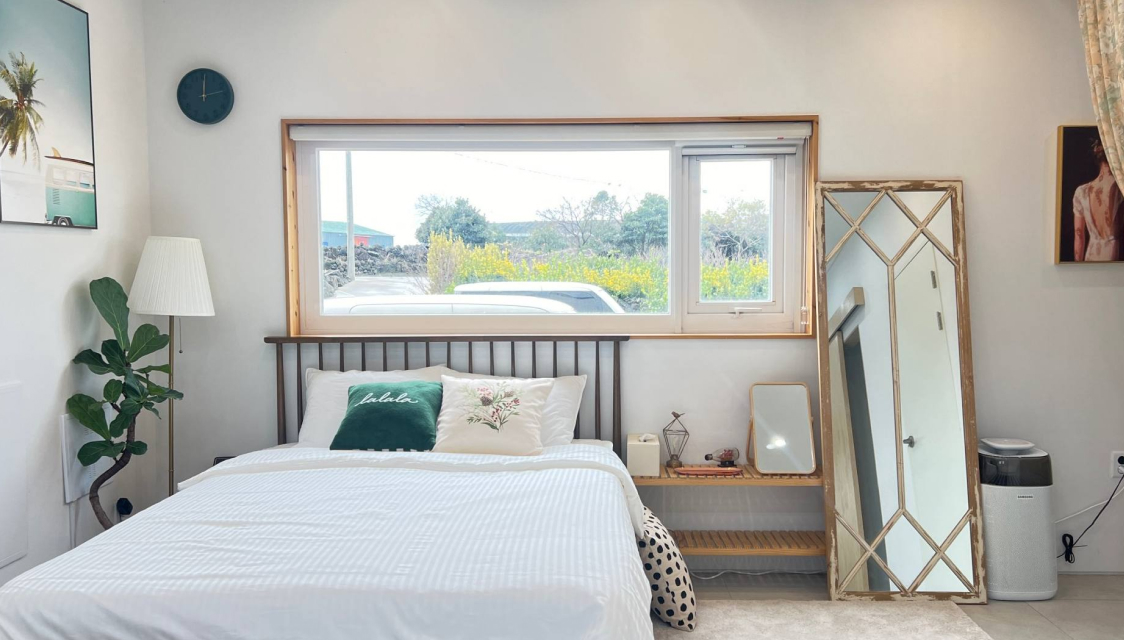 통창에서의 새소리로 기분 좋게 맞이하는 아침. 소소스테이는 대정읍 무릉리 마을 귀퉁이에 위치한 새로 지은 숙소로, 깔끔하고 아담한 독채 숙소입니다. 조용하고 아늑한 동네에 위치해 있어 소음보다는 다양한 새소리와 함께 사색하며 쉬기 좋은 곳이에요. 통창으로 보이는 마을 모습이 답답한 마음을 뻥 뚫리게 해줄 거예요. 사랑하는 반려동물과 함께 소소스테이에서 편안하게 머무르며 휴식과 제주 여행을 동시에 즐겨보세요.