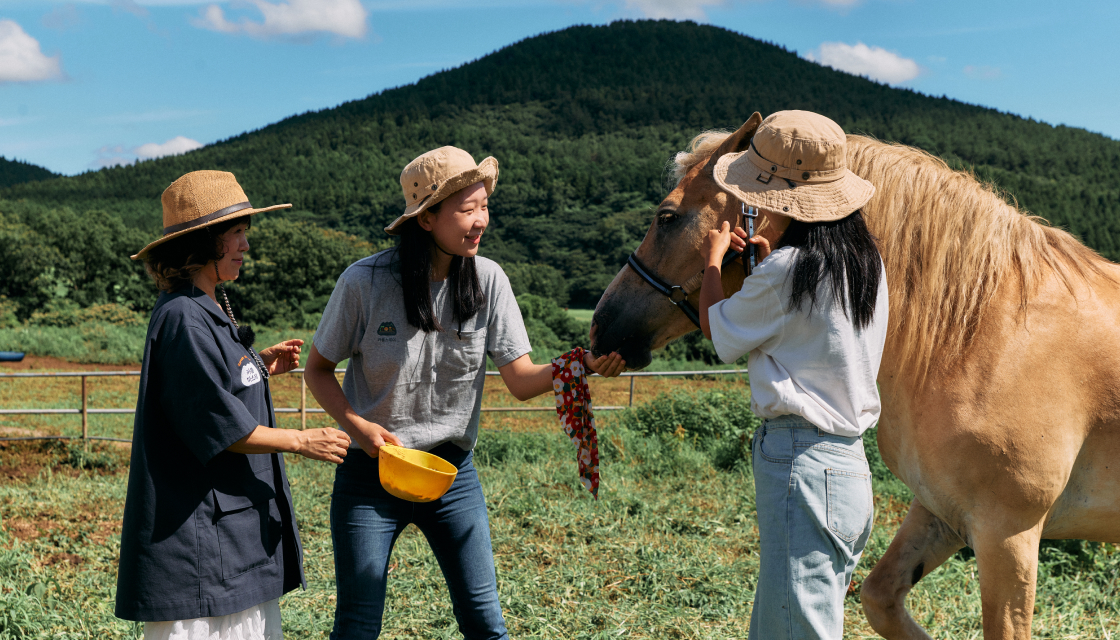 경주마의 따뜻한 눈빛을 바라보며 마음의 평안을 찾아보세요. 목장에서 맨발로 걸으며 말과 교감하고, 희귀생물도감을 만들며 자연을 탐구하는 특별한 시간을 경험할 수 있습니다.