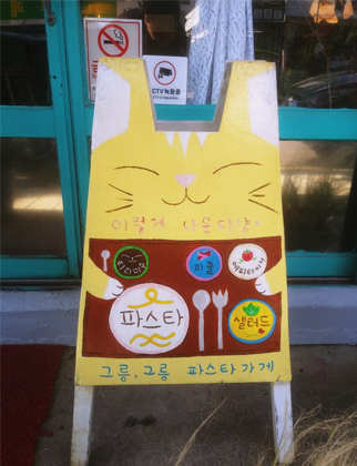 - 진짜 고양이 대신 주인장 고양이 너부리 그림 간판