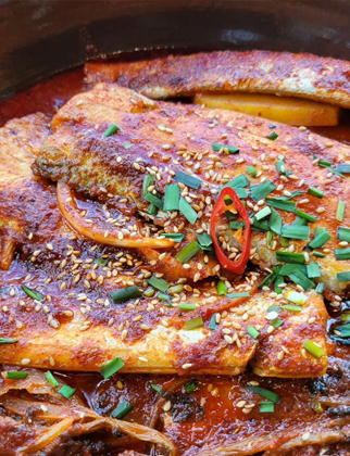 - 깊은 풍미의 숙성 소스로 맛을 낸 부드럽고 진한 갈치조림!