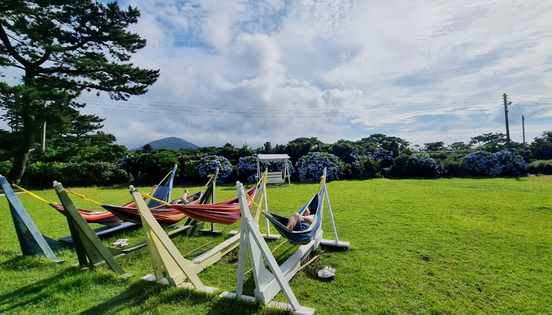 - 200평의 잔디 정원의 해먹에 누워 낮에는 섬휘파람새 소리와 책을, 밤에는 쏟아지는 별도 보아요.