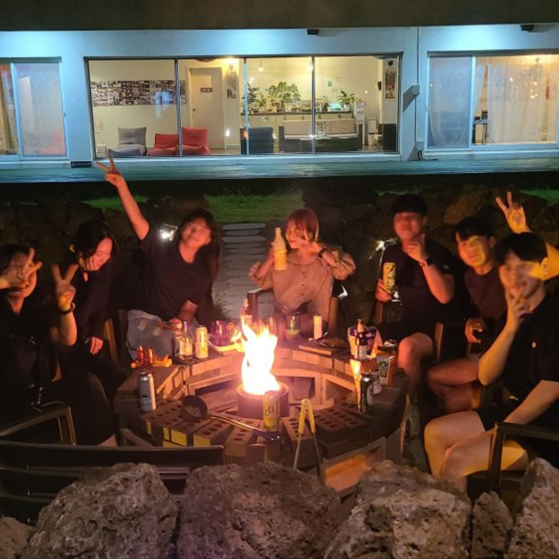 ‘몬딱’은 제주어로 ‘모두, 다, 몽땅, 모조리’이예요. 그 의미가 좋아서 몬딱 게스트하우스라고 이름을 지었어요. 혼자 오셔도 다 함께 즐길 수 있는 게스트하우스에요. 매일 불멍을 묵으시는 분들과 함께 하고 있는데, 포트럭 파티로 각자 음식과 음료 들고 와서 나눠먹어요. 그러니 매일 다른 분위기, 다른 음식, 다른 이야기를 나눌 수 있어요. 몬딱은 정원이 1500평이에요. 마을 쪽이 아니어서 음악을 크게 들을 수도 있고 마음껏 즐기실 수 있어요.