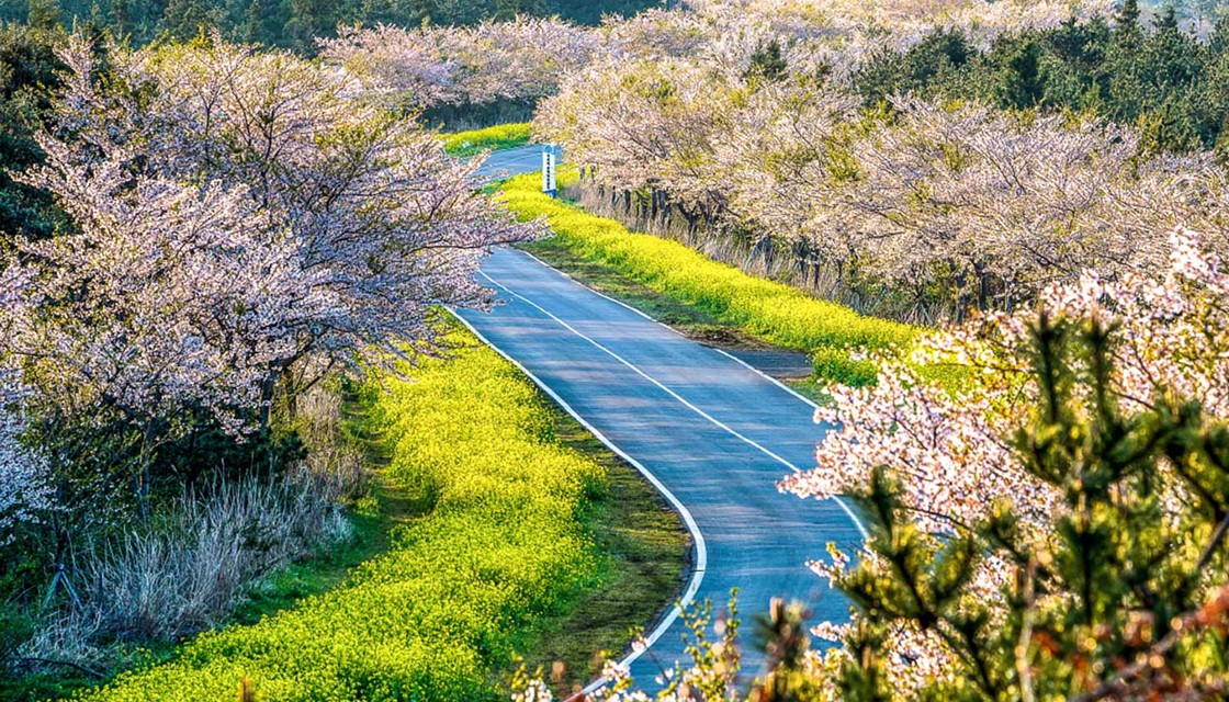 노란 유채꽃 바다가 펼쳐지는 도로, 녹산로는 제주의 봄 사진 명소로 손꼽히는 장소입니다. 차도를 중심으로 길가에 노란 유채꽃이 화사한 봄을 수놓습니다. 유채꽃과 벚꽃 개화가 겹치는 시기에는 일부 구간에서 벚꽃과 유채꽃을 함께 볼 수 있어 장관입니다. ‘한국의 아름다운 길 100선’에 선정될 정도의 인기 드라이브 코스이며, 꽃이 만개하는 시즌에는 더욱 화려한 장관을 만들어냅니다. 봄이면 이 설레는 광경을 보기 위해 많은 사람들이 찾으며, 유채꽃이 만개하는 시기에는 근처 공터에서 유채꽃 축제가 열립니다.